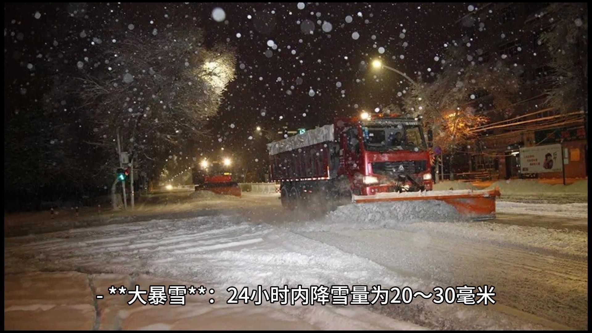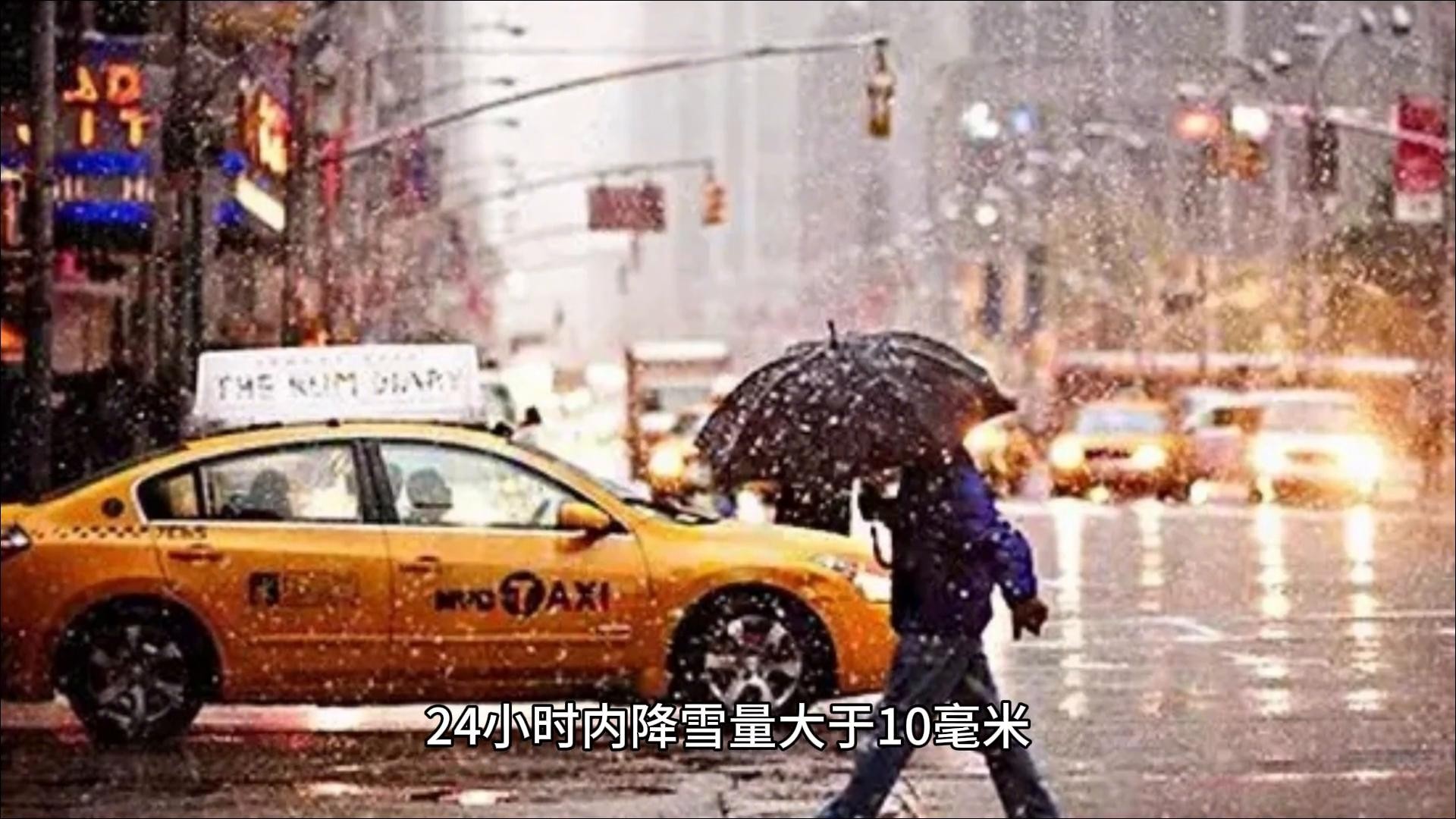 ·暴雪:12小时内降雪量大于6毫米或24小时内降雪量大于10毫米。