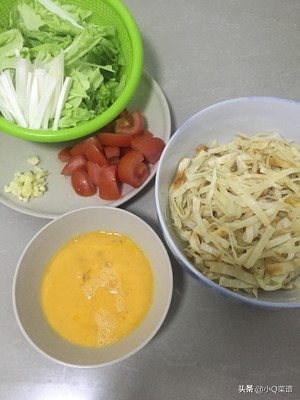 小贴士:揉面的时候可以放一点点盐增加筋道...炒饼丝的时候可以多放点油因为是新鲜饼丝,不要放水..不然就是炒糊糊了。