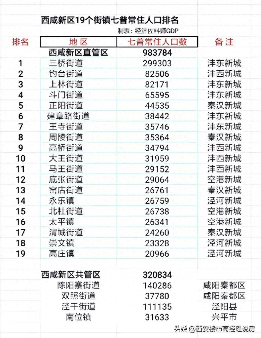 西咸新区人口最多的19个街镇,有你家乡吗?