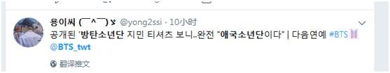 网友용이씨:看了防弹少年团智旻的T恤,完全是“爱国少年团”啊。
