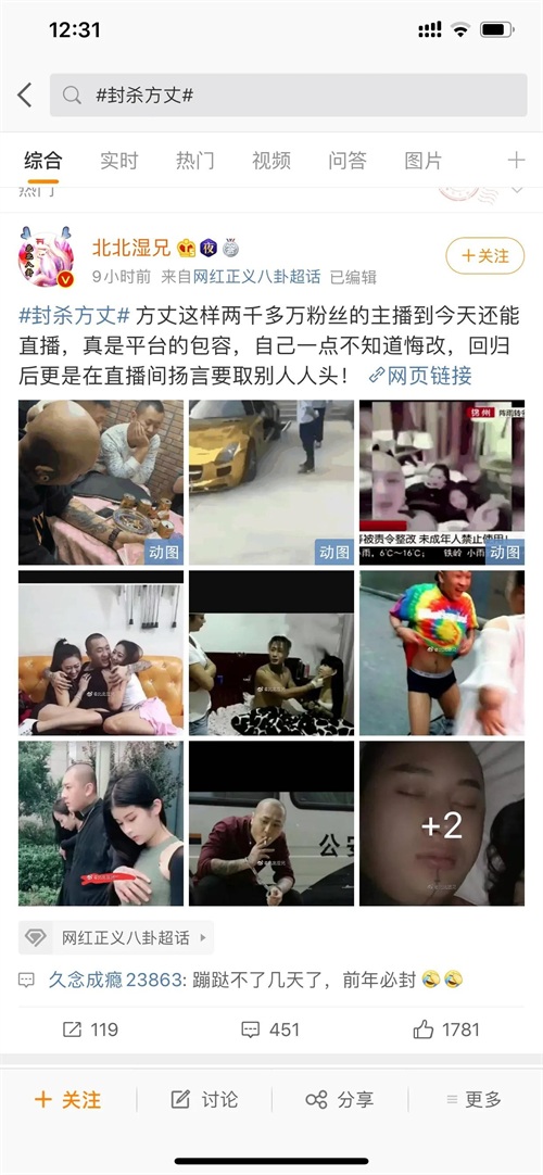 今天,微博上以“封杀方丈”为话题的报道被疯狂转发,报道。和上次散打性质差不多,小编看的时候已经4530多万了,其实这很明显是有组织的,因为方丈立场辛巴说了那些话惹来的不满