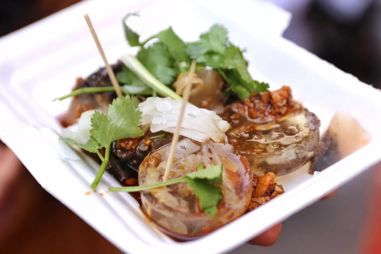 而土笋冻的灵魂,在于那精心调配的酱料。多种调料巧妙融合,既有酱油的醇厚,又有辣椒的提味,酸甜适中,为沙虫的鲜美再添一层风味。再搭配上清爽的酸萝卜和提香的香菜,每一口都是层次分明的享受。吃上一口,先是沙虫的脆爽,接着是酱料的醇厚,最后是酸萝卜的解腻与香菜的提香,让人忍不住一口接一口,越吃越上瘾。