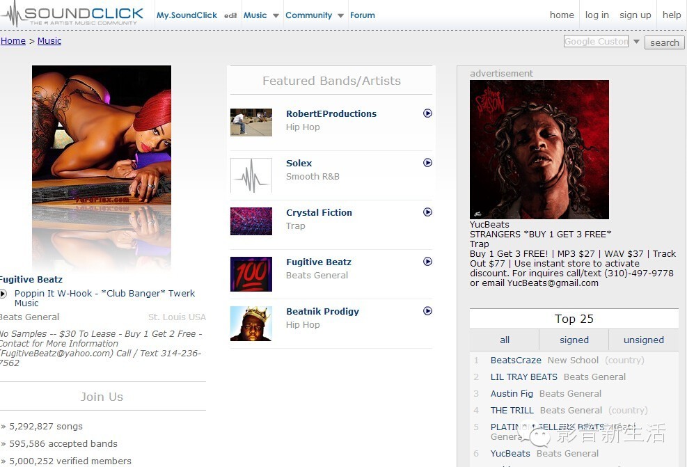 Soundclick’s music page将会以大量的可供下载的音乐把你牢牢的吸引住,相对而言包括更多的没签约的艺人,比如笔者最近迷上的德国嘻哈:I blame my scarf-wearing co-worker。
