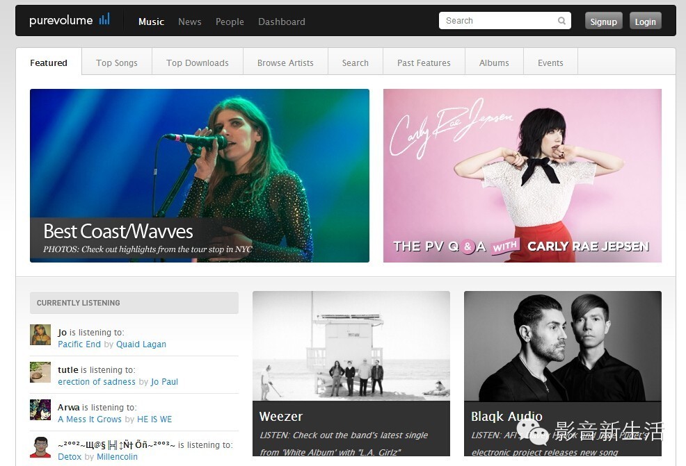 Purevolume.com提供在线收听,不过也有大量的免费下载。只需点击搜索链接去搜索或者浏览“发现新音乐”。它可以算得上获取免费音乐最快速的方式了。