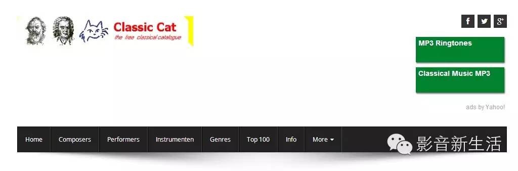 Classic Cat维护着大规模的免费古典音乐,虽然网站上找不到现成的音乐文件,但相对于自己去苦苦寻找而言,它可以很便捷地找到巴赫和贝多芬的作品。