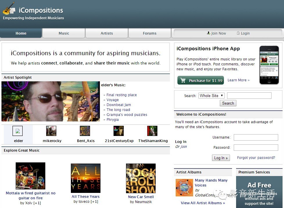 iCompositions专注于那些由苹果电脑Garage Band软件制作的音乐,在下载之前你需要注册。