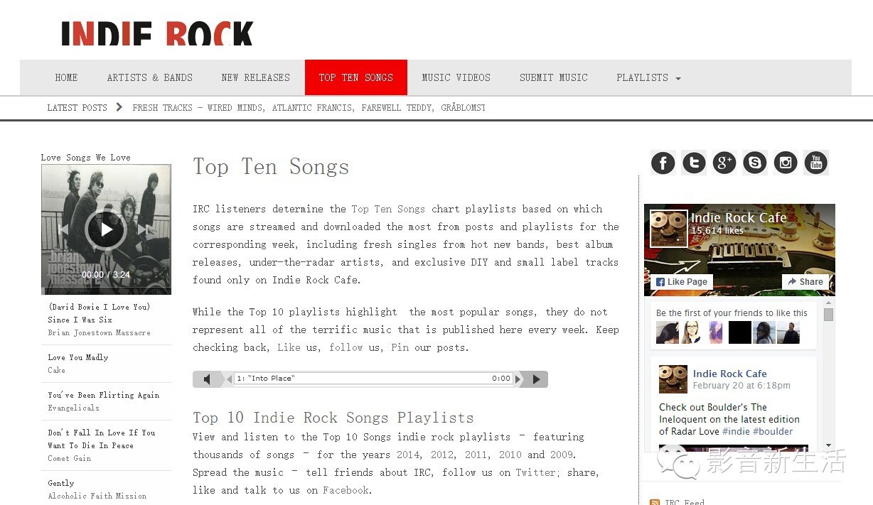 Indie Rock Cafe以博客的方式偏向于提供近期的音乐。这里没有集中的下载页面,所有你只能在每篇文章里找到零散的曲目。