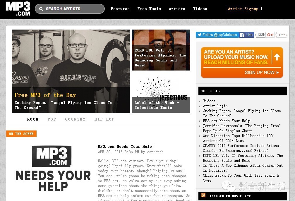 3hive的博客们在他们的网站上提供一些优秀的免费音乐下载链接。虽然在这里你不能看到很多在其他地方都可以找到的音乐,但它的确是一种很棒却又很人性化的体验。