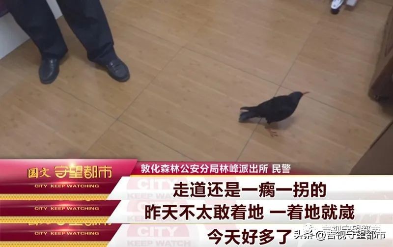 红嘴山鸦受伤,派出所内“休养”