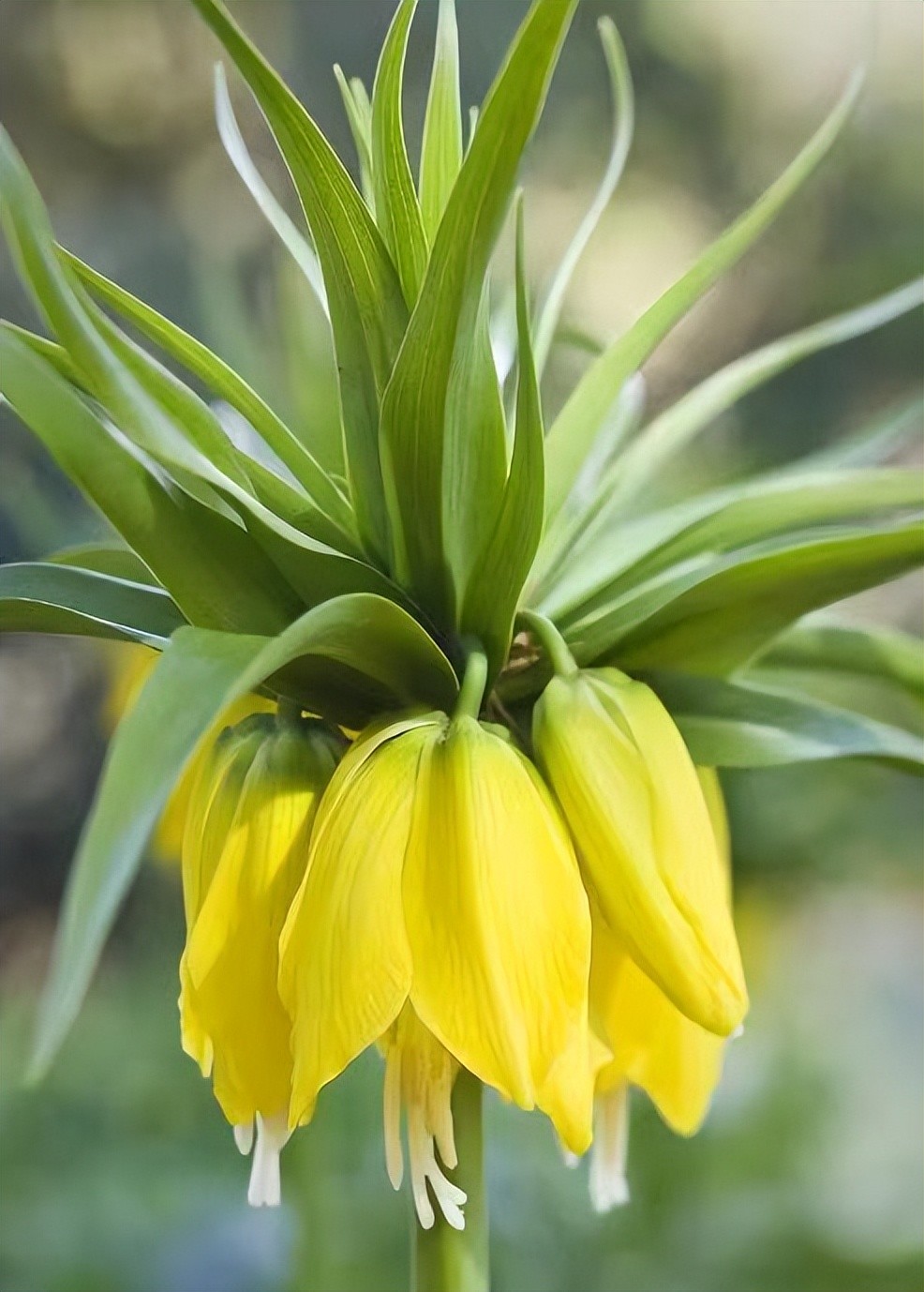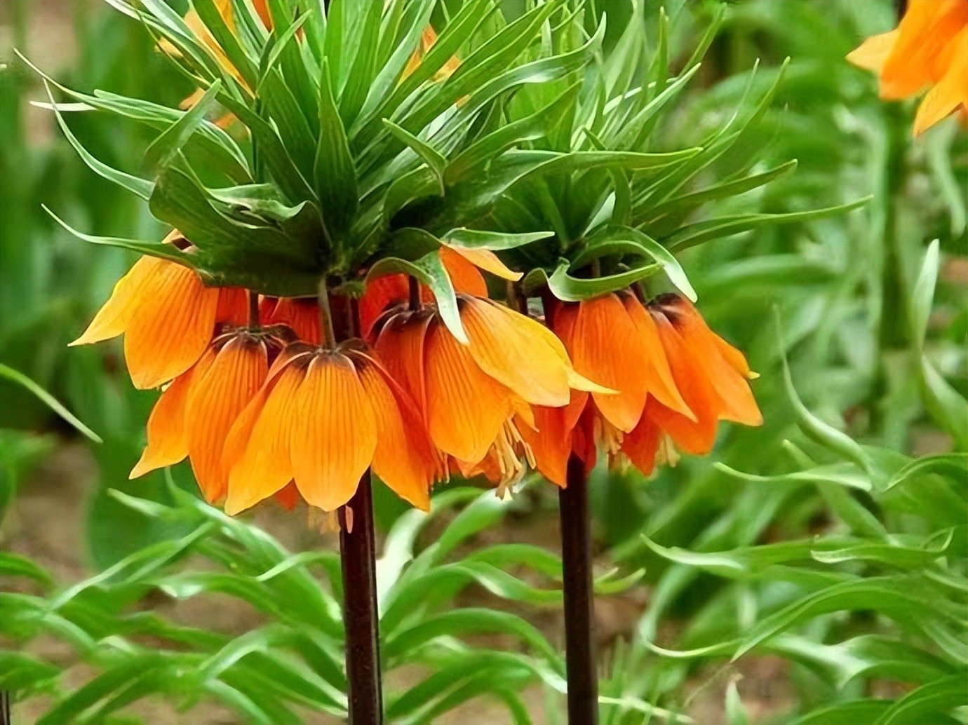 冠花贝母,又名皇冠贝母,百合科贝母属多年生球根植物,原分布于喜马拉雅山、土耳其东部及伊朗。钟状的花朵向下簇拥生长,围绕成圈如皇冠一般。花色有黄色、橙色和红色,油画质感的色泽和独特的花形,使它具有极高的观赏价值,可作鲜切花使用。