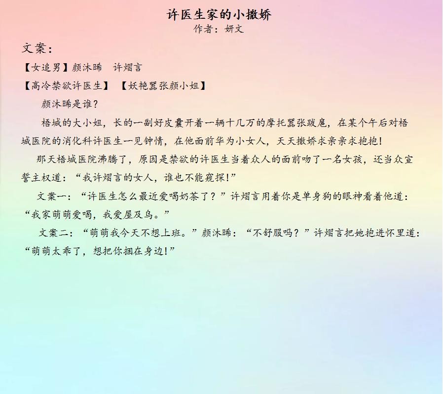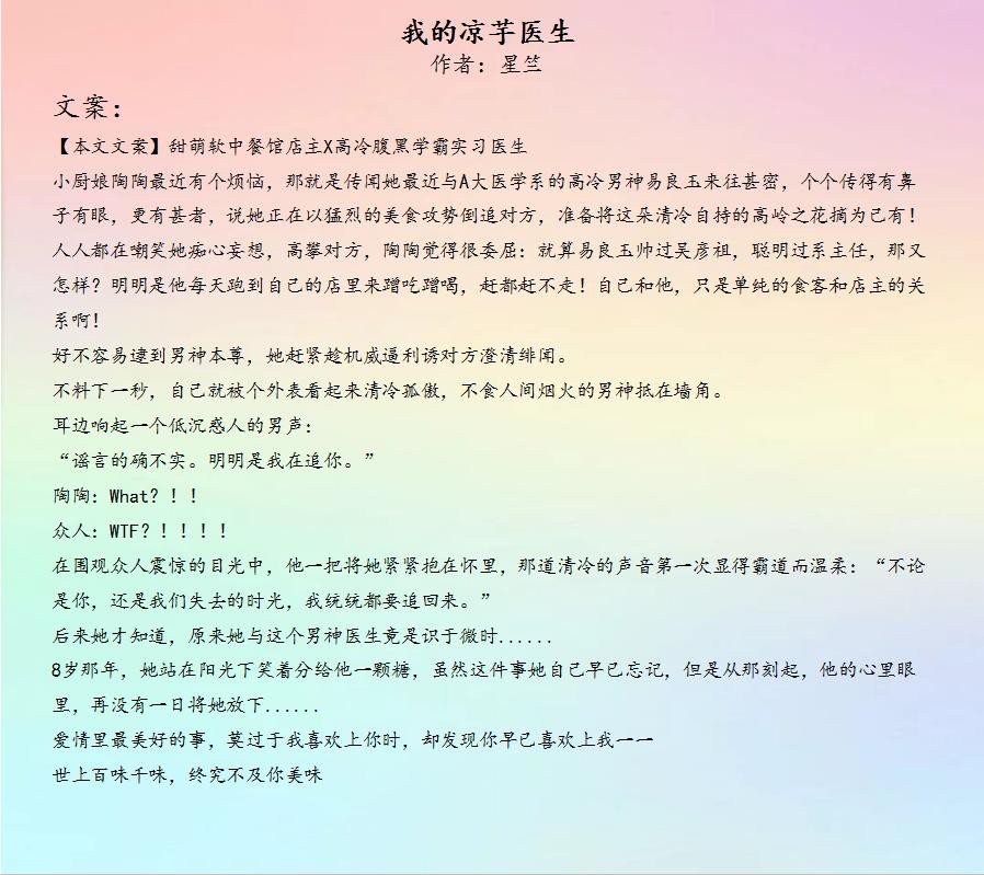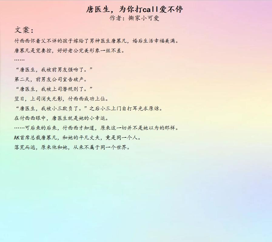 8、《唐医生,为你打call爱不停》 作者:撕家小可爱