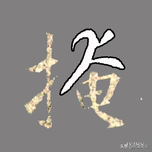《集王圣教序》中“大”字作为偏旁居下,“大”字底宜取横势,托住上部结构见“奘、莫”字,“大”字底的捺画宜写作侧点。作为偏旁居上时,“奇”字写成点、横以及下面相向的左挑点和右撇点。“掩”字的大字旁调整笔顺,从右上角反向起笔写横画,并连续翻锋写弧线,一气呵成,有“匠心独运”之感。
