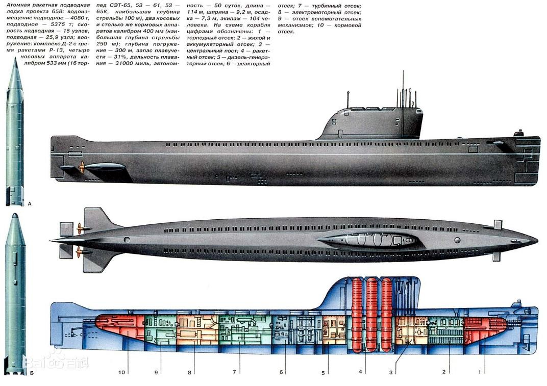 658型旅馆级战略核潜艇,在1956年开始研发,该级别的第一艘是在1958年开始生产,1960年生产完毕开始服役,在研发该级别的核潜艇的时候659型巡航导弹也在研发,在1961年开始服役了。