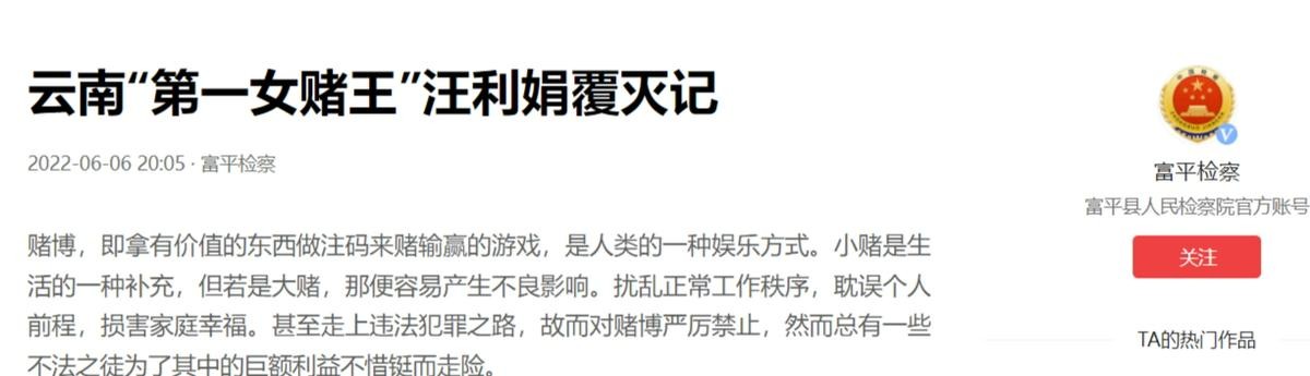 富平县检察院官网:《云南“第一女赌王”汪利娟覆灭记》