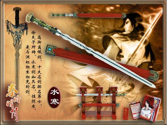 此剑以高渐离的大哥荆轲的诗句“风萧萧兮易水寒”命名。独属绝技也名为“易水寒”。剑如其名,性阴寒,是与排行第二的渊虹相生相克的剑,平时被高渐离藏于乐器筑中。水寒剑剑风轻盈灵敏,剑身纤长锋锐,能够发出寒气甚至结冰,是一把美观而实用的名剑。