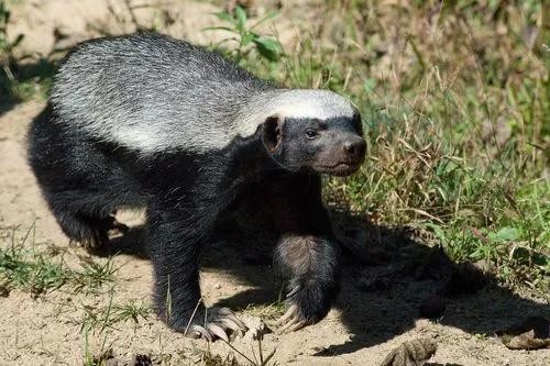 平头哥是蜜獾的外号,因为头顶较为平,头顶往下和背部有一层灰白色的毛发,好像社会大哥,也就因为它的性格不达目的誓不罢休,敢与狮子、鬣狗、蟒蛇等等动物撕扯是天不怕地不怕的主。在草原上甚至没有动物敢惹它,它身体即便比狐狸还弱小,但打起架来威武不屈。