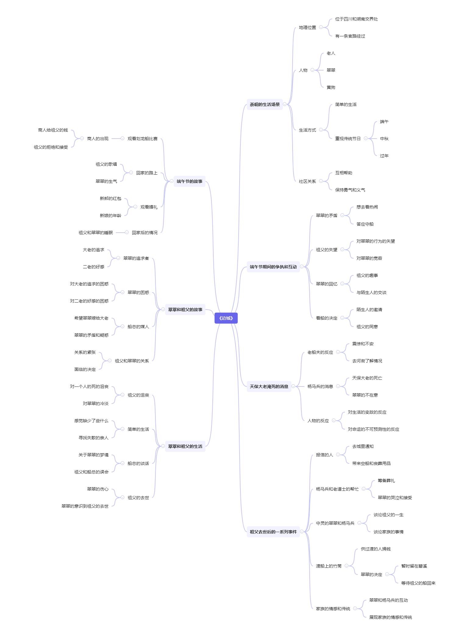 今天讲的是沈从文先生的《边城》,以下是其思维导图