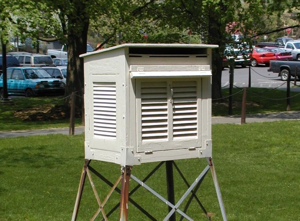 这个百叶箱的目的是防止太阳辐射对观测值的影响,而百叶箱由于通风条件比较好,防止空气不流动,导致观测值出现偏差。