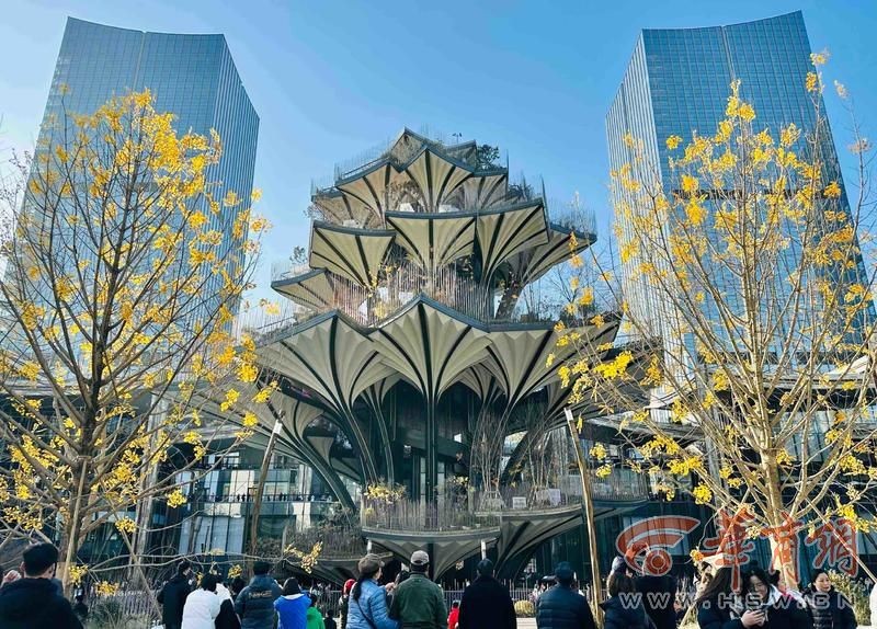 12月28日15时,冬日的暖阳越过西安电视塔,穿越万象城的楼宇,将一束金光照耀在57米高的新地标建筑生命之树。这件由英国建筑“鬼才设计师”托马斯·赫斯维克操刀,以西安古观音禅寺的千年银杏树为灵感,象征着自然之美和生生不息的力量生命之树,它如同一颗梦幻的宝石镶嵌在城市之中,展现出西安的现代与时尚,它一落成便成了当之无愧的网红打卡地。