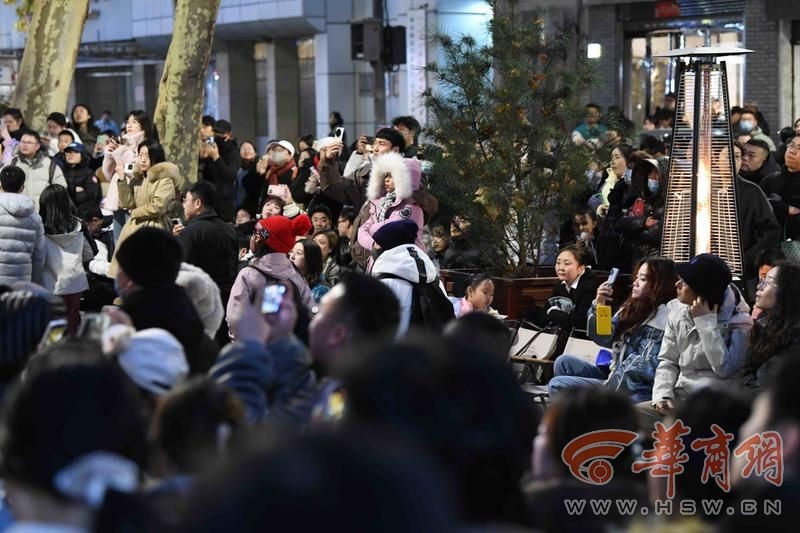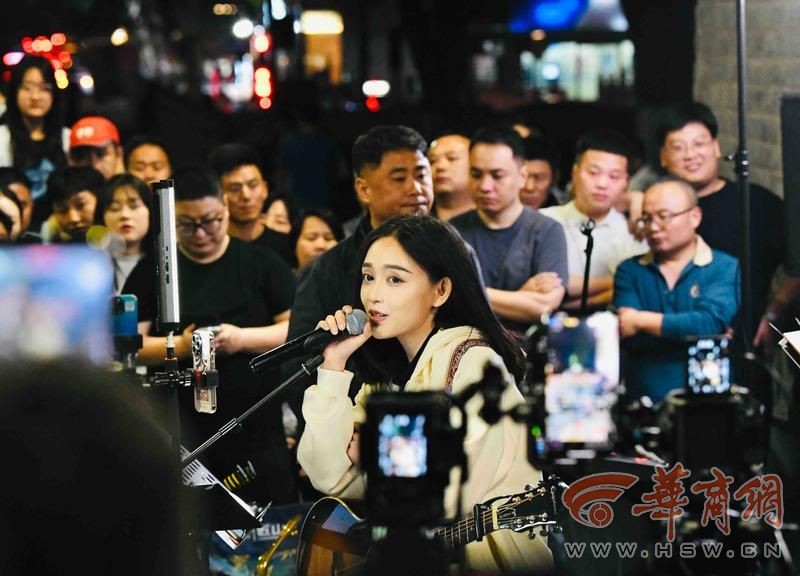 4月22日22:30,文昌门西门洞传来悦耳的音乐声,西安城墙音乐发起人韩小九正在弹着吉他唱歌直播。游客和粉丝不停喊着“《遇见》、《遇见》……”,韩小九微笑着拨动琴弦,轻轻哼唱起“额听见风来自地铁和人海……”,观众们声嘶力竭的跟着和“额排着队拿着爱的号码牌……”这首西安方言版《遇见》的全网播放量近 6000万,也是韩小九每晚必然会被频繁点唱的曲目。
