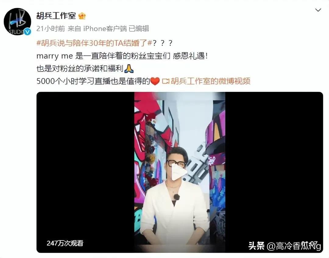 然而粉丝们火眼金睛,看到胡兵在视频中说了“和陪伴30年的ta结婚了”,于是就有人开始为这个“ta”不断猜测。有网友认为,回忆一下胡兵的个人档案,他似乎一直都没有公开过自己女友的照片或名字,这是否意味着?
