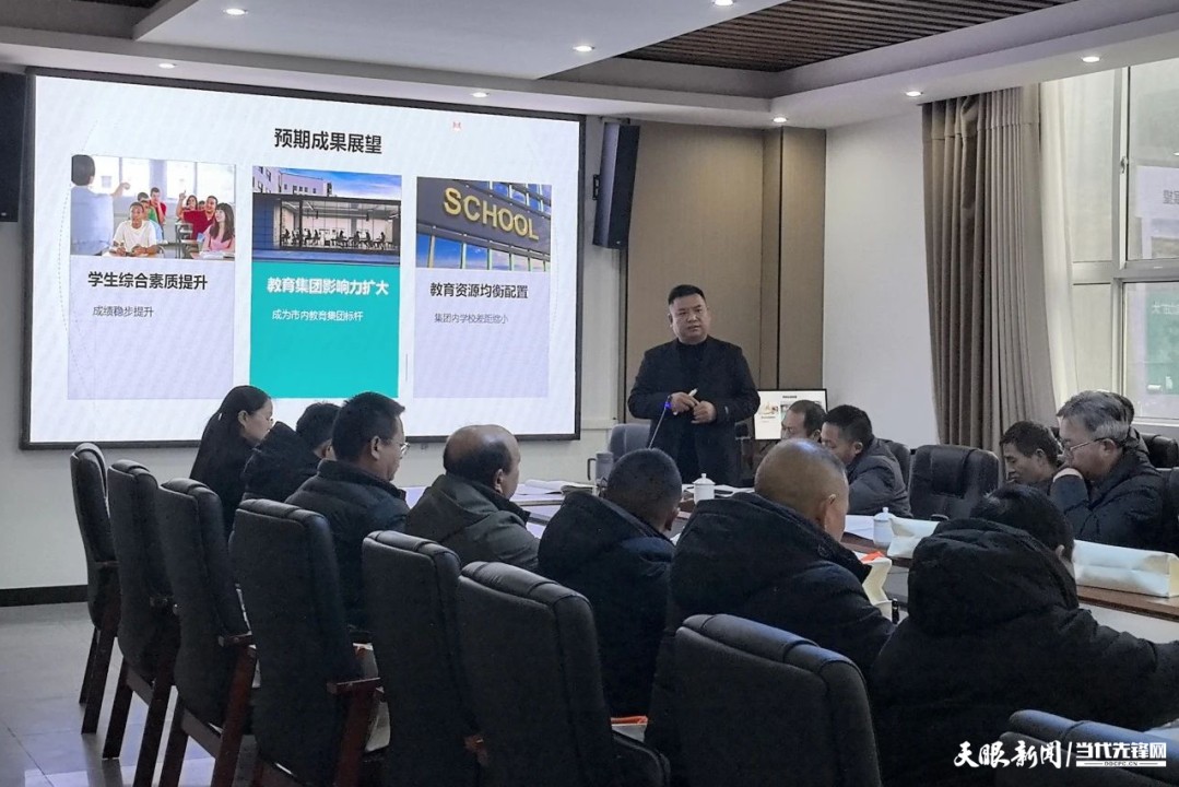 会上,盘州市第九中学校党委书记、校长汤世卫详细介绍了该校纵向教育集团化办学的思路,涵盖集团总校介绍、集团化办学章程、发展规划(2025-2027)工作实施方案、春季学期活动预安排等五个方面。并进一步表示,在贯彻教育大会精神、推进盘州市教育高质量发展的背景下,乘着结对联盟的东风,全力以赴办好让学生、家长和社会满意的教育服务,始终与各成员校保持一致的目标和方向,共同成长进步。