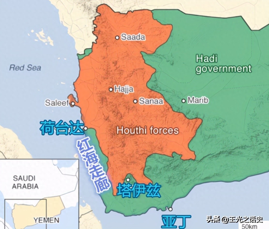 红色区域为胡塞武装控制地区