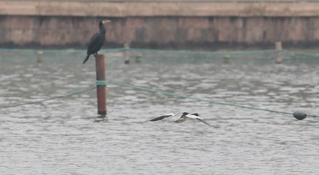 “我当时看到一只黑黑的头,没一会儿就沉到水里去了,以为是鸬鹚在捕鱼呢,等我拿望远镜一看,才发现原来是中华秋沙鸭,雄性,特别好看。”吴晓丽很激动,下意识地就举起相机按下快门,“只可惜,当时有一艘电瓶工作船靠近,中华秋沙鸭非常胆小,很快警觉起来,朝断桥方向飞走了,前后也就三四分钟时间。”