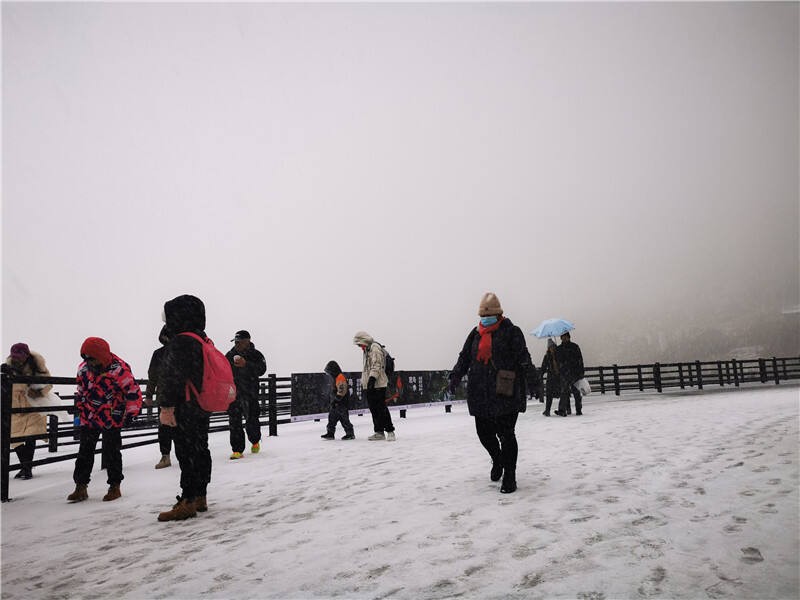 今天下午15点轿子雪山开始降雪,景区本次降雪从3147米海拔到4223米海拔,目前景区内积雪厚度大约10cm,天气预报显示今天夜间将会持续降雪,加上1月16日下的第一场雪,轿子山景区内积雪可以保持到3月份。