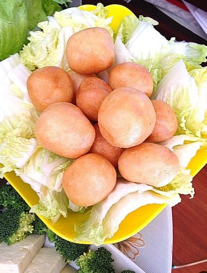 只要是自己喜欢的都可以用来沾着吃。串不起来的直接放锅里泡一下用筷子夹着吃,也可以给锅通电涮菜和粉条吃