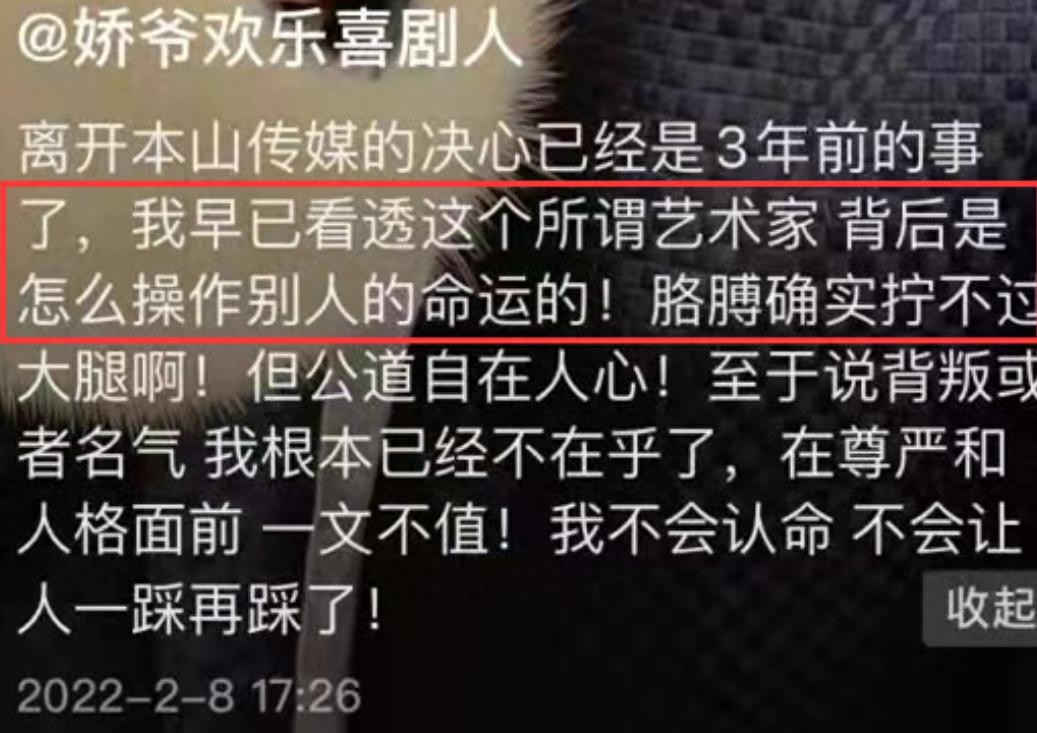 此外,她还单方面宣布退出本山传媒,称这是她3年前想做的事情。