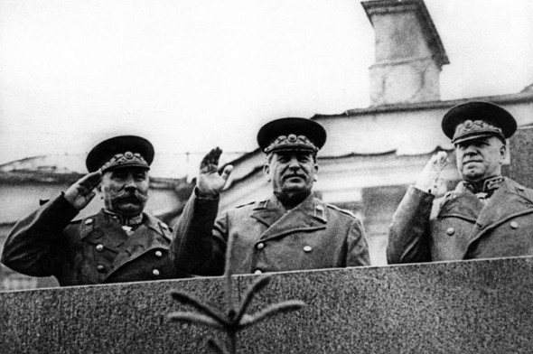 1941年11月7日,斯大林走向莫斯科红场的主席台,在斯大林的脚下是列宁的墓地,24年的这一天斯大林和列宁在炮火中一起建立了这个国家,而今天斯大林要守护他们曾经为之奋斗的一切,此时站在台下的是两万多名等待接受检阅的苏联红军,他们的步枪里压满了子弹,因为他们在检阅后,就要奔赴前线与莫斯科城外的敌人展开殊死搏斗。在漫天大雪中斯大林在主席台上对全世界广播中说到:我们要消灭德国侵略者,我们光荣的祖国万岁,我们的独立万岁,在列宁的旗帜下向胜利前进。现场回应斯大林的是山呼海啸的乌拉声。此时全世界都听到了斯大林的演讲和苏联红军的高呼。希特勒也听到了,他愤怒了,这对于他来说是莫大的侮辱,斯大林仿佛是在指着希特勒的鼻子说:我现在就在莫斯科的红场阅兵,你但凡有一支军队能打进莫斯科,有一架飞机飞到我的头上就能把我杀了,但你能吗?!希特勒气急败坏地要求德国空军不惜一切代价打断莫斯科的红场阅兵,但是朱可夫指挥苏联防空部队和空军阻止了这一切,最终德国空军再付出了惨重的损失后放弃了轰炸计划。苏联红场阅兵的成功举行,极大地鼓舞了苏联人民的抵抗士气,斯大林的决心也展露无疑,莫斯科就是最后的防线,他不会后退一步。
