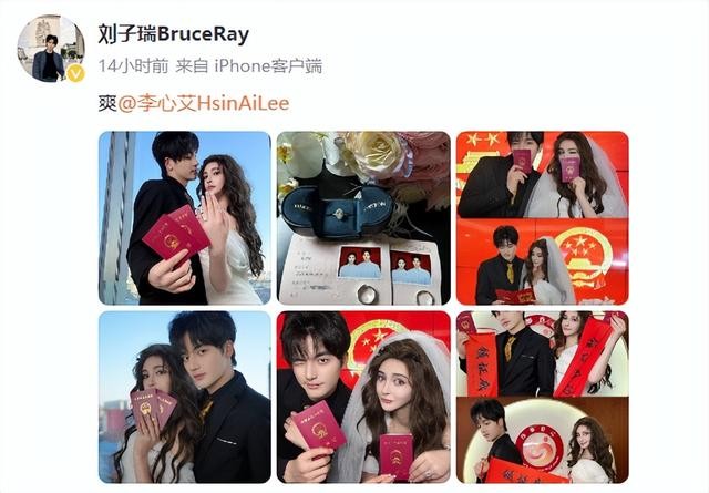 6日晚,演员李心艾晒照宣布结婚:“好了好了~我们官宣啦~刘子瑞~携手共进。”