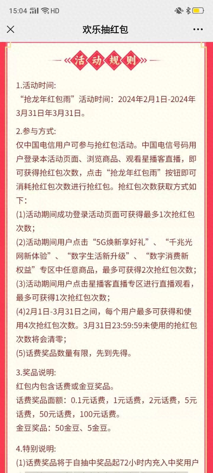 【活动奖品】:100元话费,50元话费,5元话费,2元话费,1元话费,0.1元话费,50金豆,5金豆。中奖话费即刻到账,无需兑换或充值