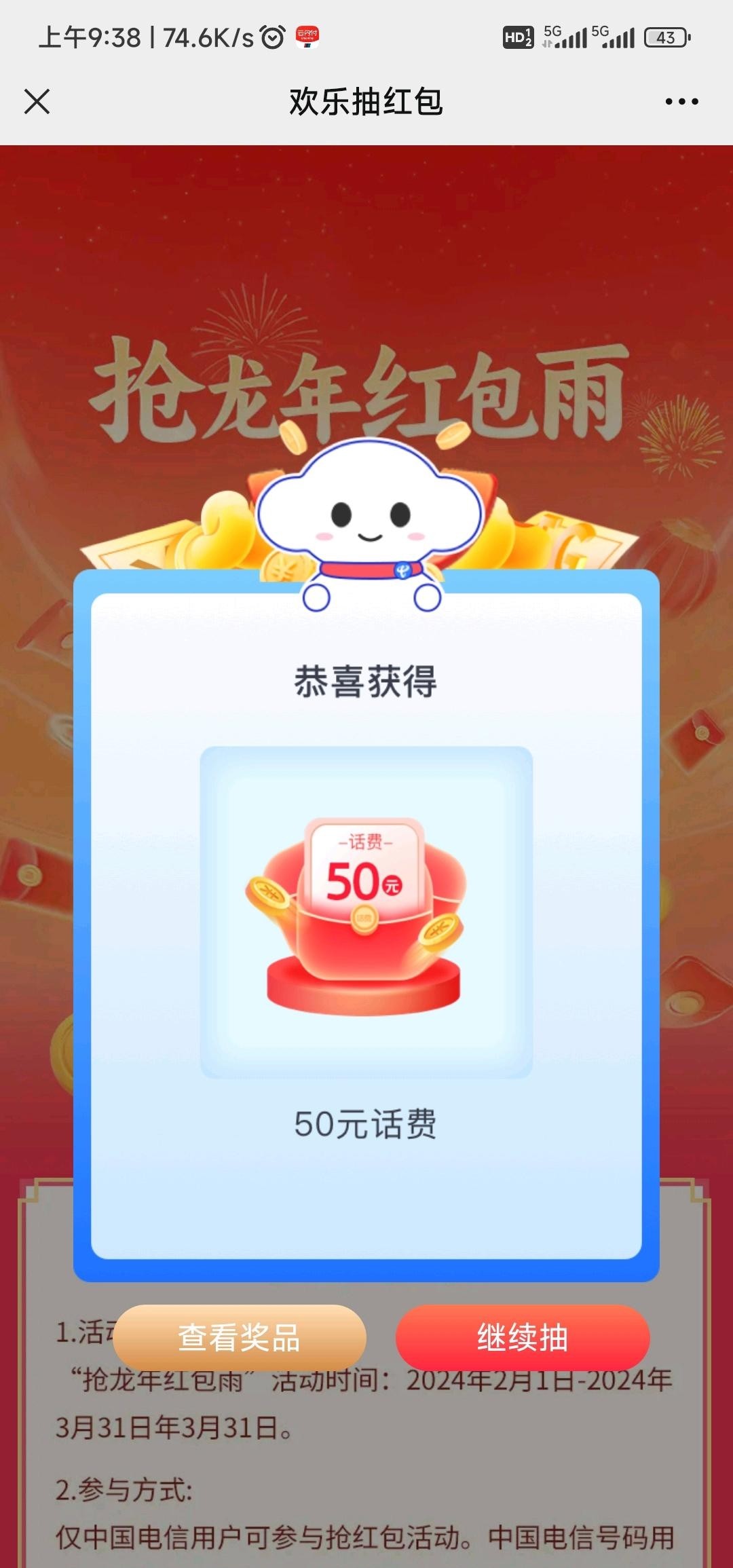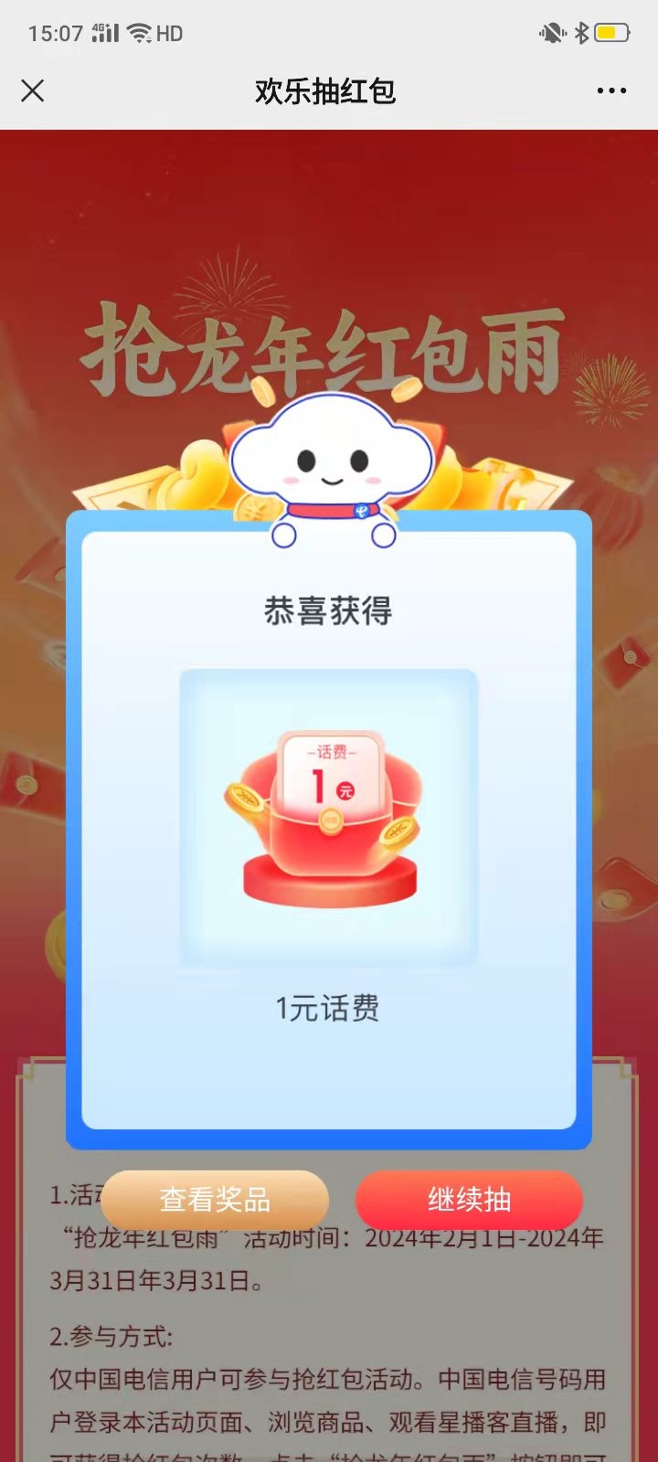 (建议大家整点参与活动更容易获得话费奖励哦)