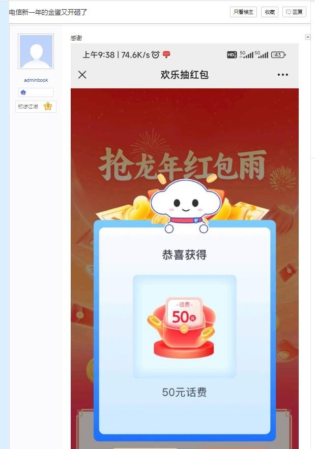 新年大吉!电信发话费福利,1-100元人人可领