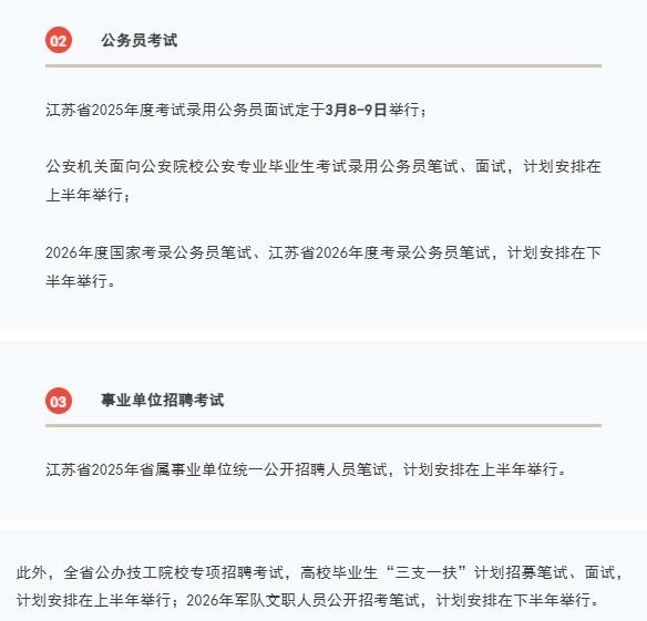 近期,江苏省人力资源和社会保障厅印发《江苏省2025年人事考试工作计划的通知》向社会公布了全年36项人事考试工作计划,其中由扬州市人社局组织的考试项目27项,其余9项由行业主管部门负责。