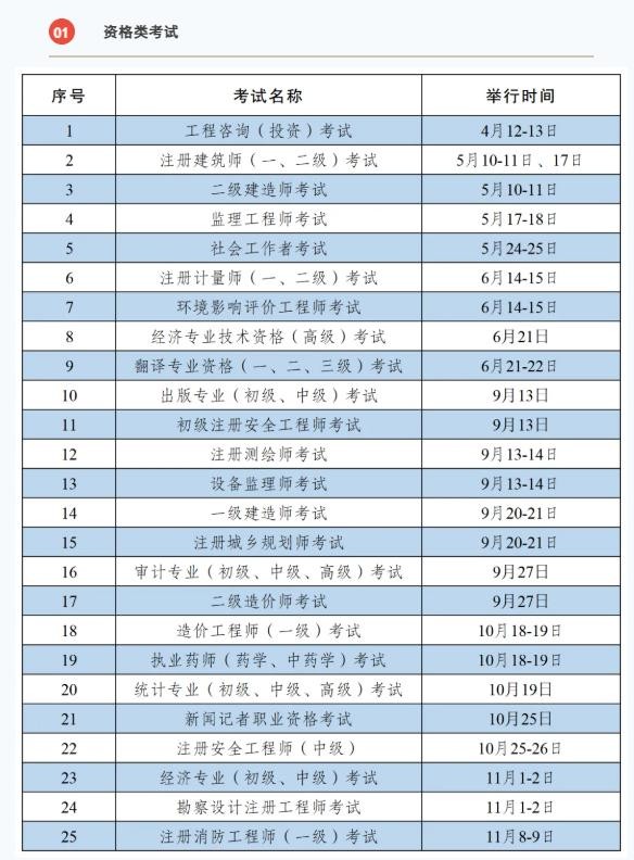 每年年初,中国人事考试网发布全年专业技术人员职业资格考试工作计划;江苏省人事考试网(