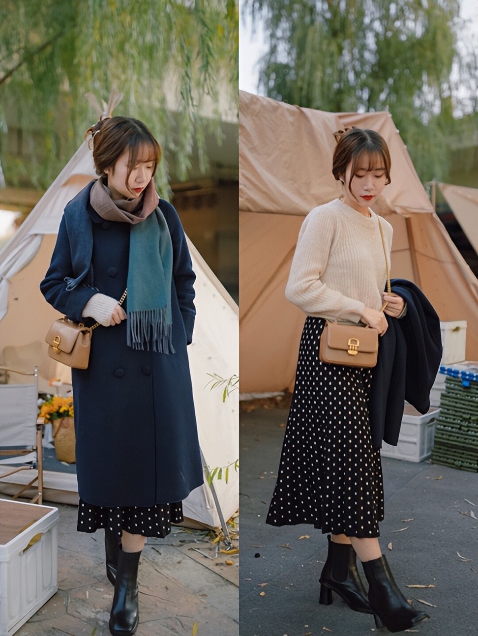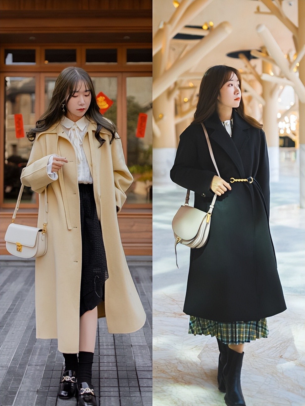1、大衣+半身裙