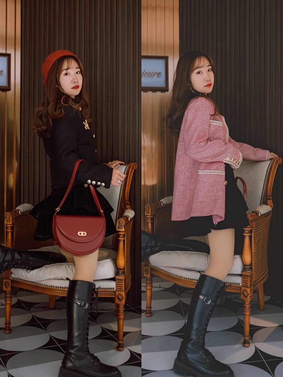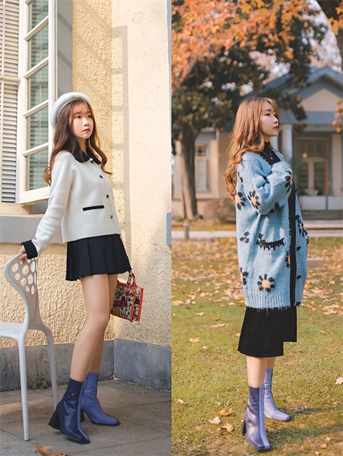 冬季的搭配也不要太厚重,推荐你们可以利用各种露肤的穿衣搭配修饰身材,比如露腿和露脚踝,也是可以增高显瘦的。