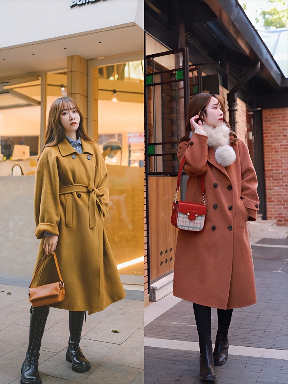 长筒靴和大衣的搭配也可以收缩我们的腿围,对于矮个子而言挺值得考虑的。