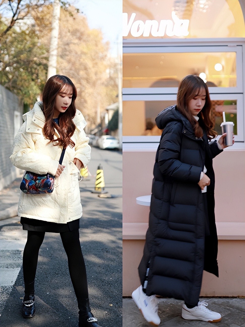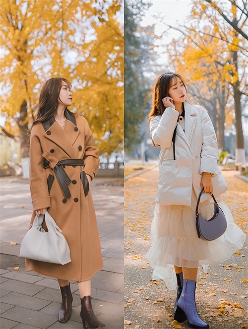 冬季穿大衣和羽绒服的时候,姐妹们不妨就去尝试把自己的脚踝露出来,这种搭配不会太厚重,将我们的注意力转移到下半身,还是比较轻盈的。