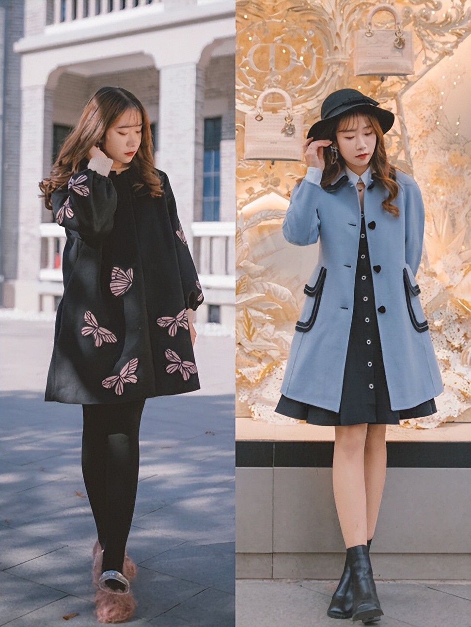 小个子挑选大衣的时候注意版型不可以太宽松,不然就会显得臃肿,骨架小的美眉撑不起来,其实这些简单的长款直筒型大衣挺友好的,能够直接改善我们的身材。