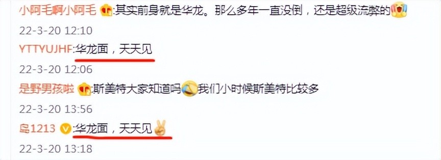还有网友亲切的叫出了华龙的广告词:华龙面天天见!