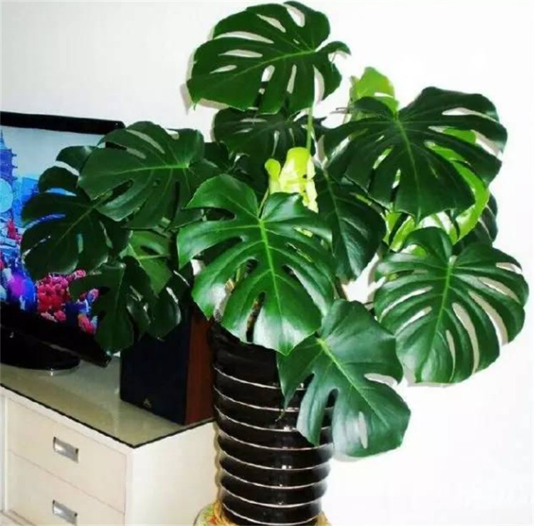 龟背竹是一种特别有意思的大型室内花卉盆栽,它的叶片就像是乌龟的壳一样,当龟背竹茂盛生长时就像是室内长满了一只只绿色的乌龟,象征着长寿美好的寓意。
