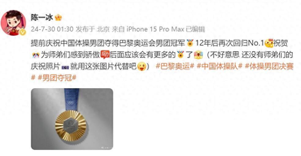 中国奥运冠军陈一冰在社交媒体上庆祝中国男团获得奖励,但没想到这个行为却让他踩到了“第二条腿”。