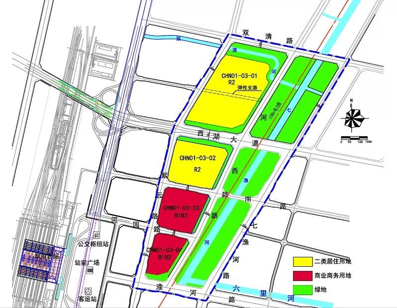 为增强规划的可操作性,拟将河西路(何园路——淮河路)段及(西湖大道——颍南路)段取消,CHN01-03-02地块用地性质由二类居住用地调整为文化用地。