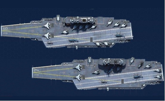 · 飞行设施:光学助降系统,滑跃式起飞/拦阻索回收(STOBAR)系统,艏部14度滑跳甲板。