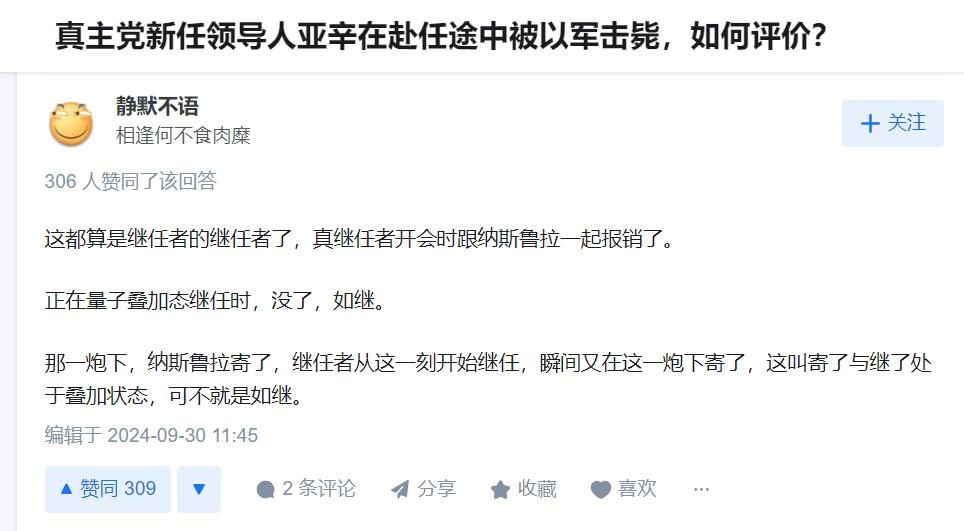 如果这些真主党高层没死,他们就可以召唤出无数炮灰,利用正义的,或者虚妄的口号,号召更多黎巴嫩、阿拉伯年轻人继续用人肉去对抗以色列军队,但现在他们都死了,也许战争就直接结束了。