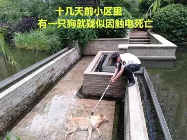 一位业主表示,出事的地方是小区的景观带,景观带内有一片水域,当时设计的时候,这座桥就像下穿隧道一样,往下沉的。另外一位业主说,大约10天前,这里也有曾发现一只狗倒在同一个地方,后来物业把它埋了,“不知道上次狗倒下是不是同一个原因。”